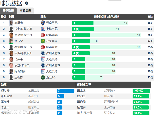 在中超射手榜上平台配资,奥斯卡和拉唐5球并列第一,4人4球并列第三;在中超助攻榜上,约尼查7助遥遥领先,米特里策3助排名第二。
